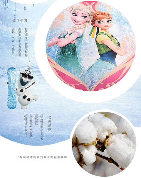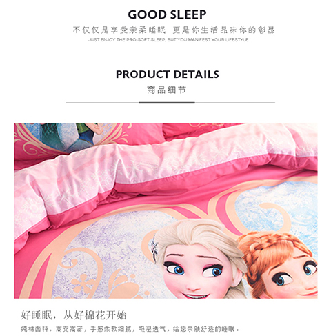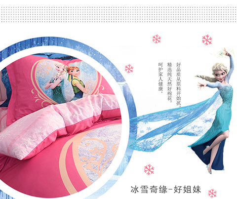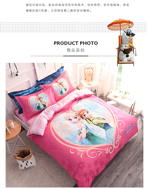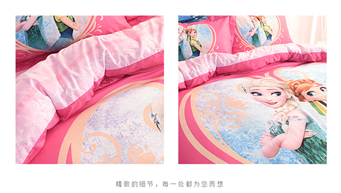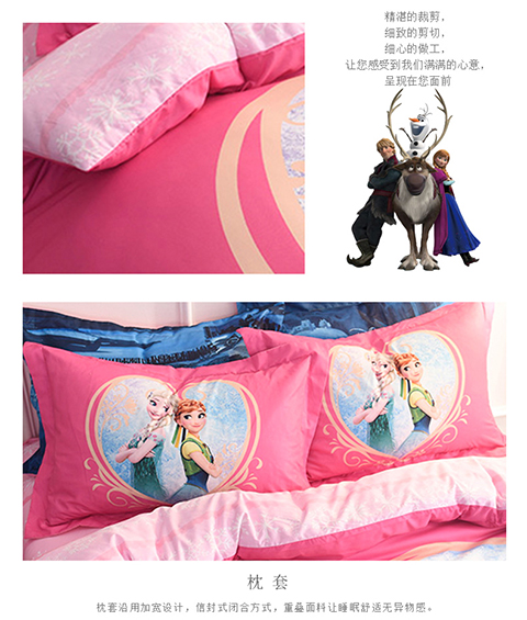 正版迪士尼纯棉磨毛加儿童四件套全棉女孩床单被套床上用品男孩卡通三件套1.2米床上下铺1.5米床四件套 冰雪奇缘