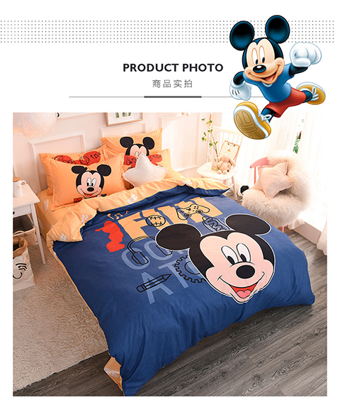 四件套纯棉北欧简约 四件套纯棉床笠款 四件套纯棉卡通全棉大阪卡通印花四件套 纯棉面料亲肤透气舒适 迪士尼-呆萌米奇