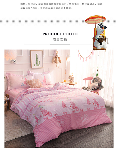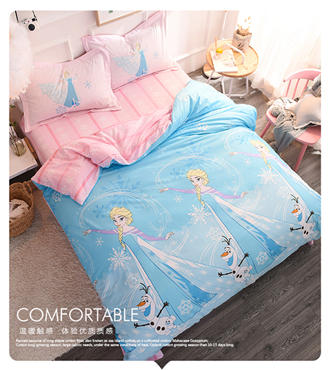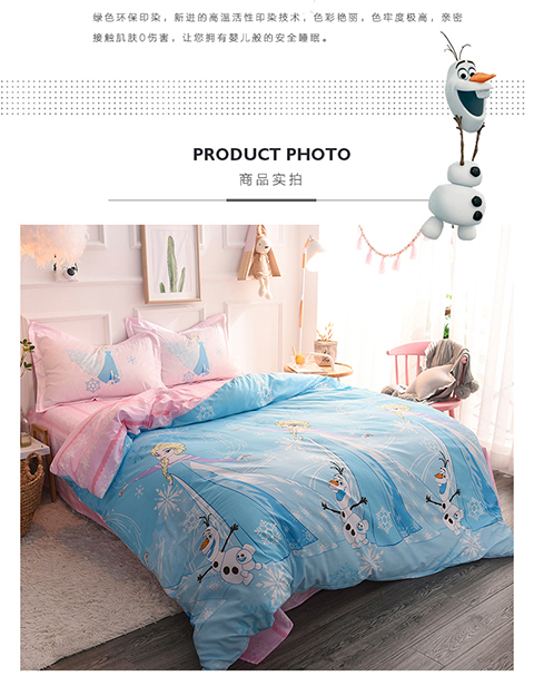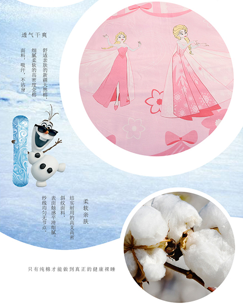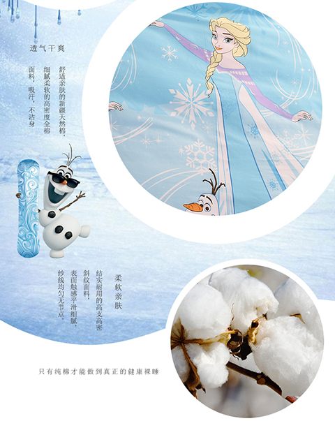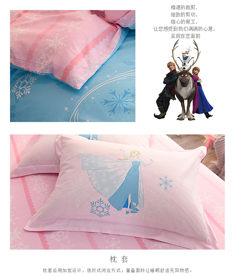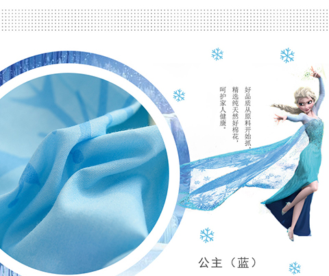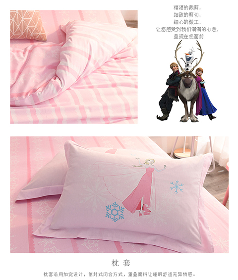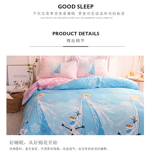 正版迪士尼纯棉磨毛加儿童四件套全棉女孩床单被套床上用品男孩卡通三件套1.2米床上下铺1.5米床四件套 公主-蓝