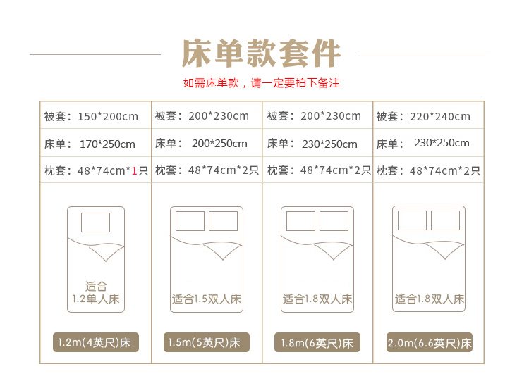 床单尺寸(cm)