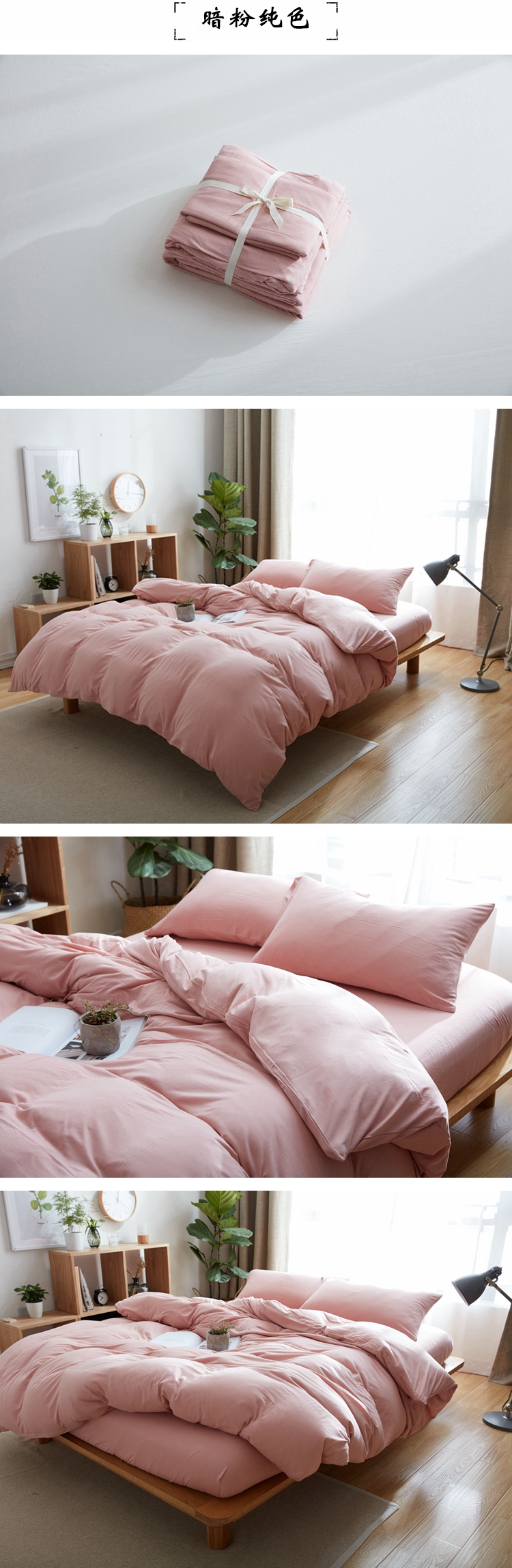 【无印良品】暗粉纯色 针织棉四件套